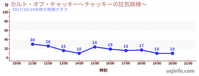 • カルト・オブ・チャッキー~チャッキーの狂気病棟~$B$N(B2017年10月10日の待ち時間