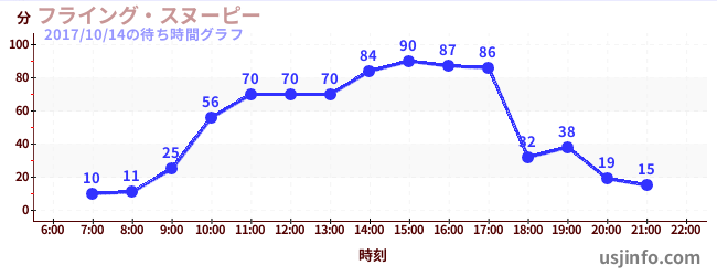• フライング・スヌーピー$B$N(B2017年10月14日の待ち時間
