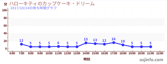 • ハローキティのカップケーキ・ドリーム$B$N(B2017年10月14日の待ち時間