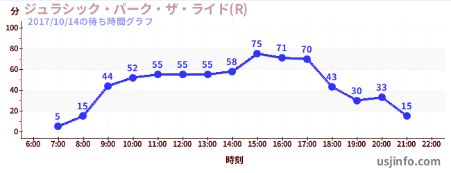 • ジュラシック・パーク・ザ・ライド(R)$B$N(B2017年10月14日の待ち時間