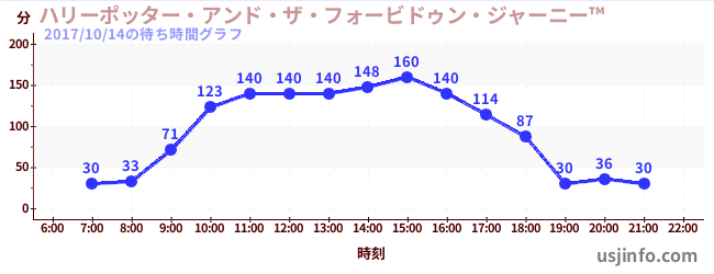 • ハリーポッター・アンド・ザ・フォービドゥン・ジャーニー™$B$N(B2017年10月14日の待ち時間