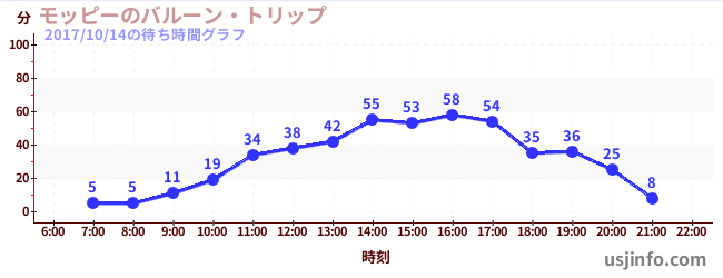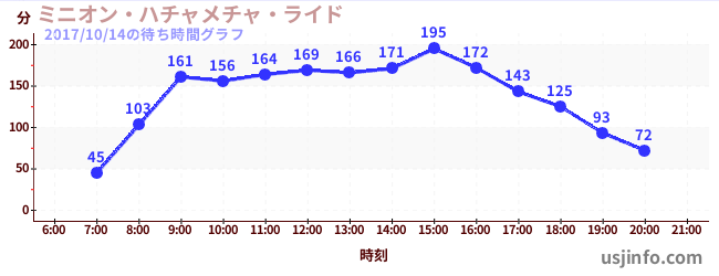 • ミニオン・ハチャメチャ・ライド$B$N(B2017年10月14日の待ち時間