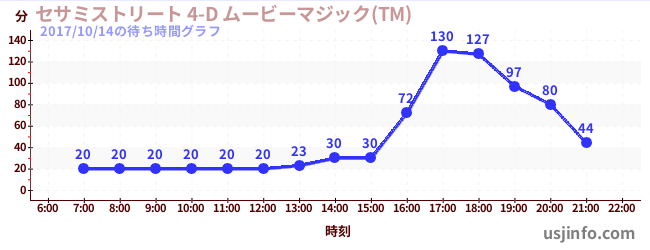 • セサミストリート 4-D ムービーマジック(TM)$B$N(B2017年10月14日の待ち時間