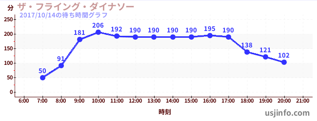 • ザ・フライング・ダイナソー$B$N(B2017年10月14日の待ち時間