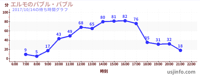 • エルモのバブル・バブル$B$N(B2017年10月14日の待ち時間
