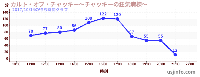 • カルト・オブ・チャッキー~チャッキーの狂気病棟~$B$N(B2017年10月14日の待ち時間