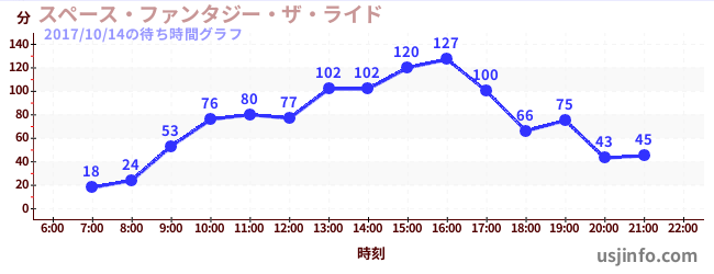 • スペース・ファンタジー・ザ・ライド$B$N(B2017年10月14日の待ち時間