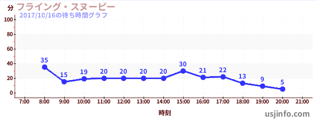 • フライング・スヌーピー$B$N(B2017年10月16日の待ち時間