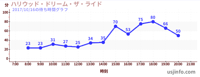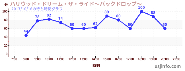 • ハリウッド・ドリーム・ザ・ライド〜バックドロップ〜$B$N(B2017年10月16日の待ち時間