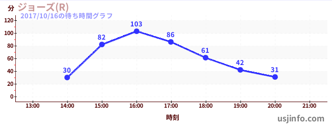 • ジョーズ(R)$B$N(B2017年10月16日の待ち時間