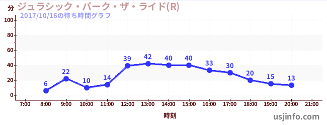 • ジュラシック・パーク・ザ・ライド(R)$B$N(B2017年10月16日の待ち時間