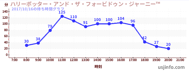 • ハリーポッター・アンド・ザ・フォービドゥン・ジャーニー™$B$N(B2017年10月16日の待ち時間