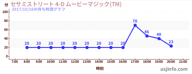 • セサミストリート 4-D ムービーマジック(TM)$B$N(B2017年10月16日の待ち時間