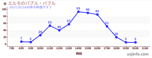 • エルモのバブル・バブル$B$N(B2017年10月16日の待ち時間