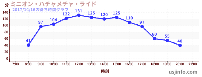 • ミニオン・ハチャメチャ・ライド$B$N(B2017年10月16日の待ち時間