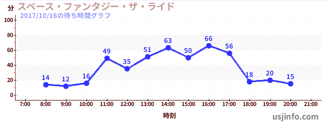 • スペース・ファンタジー・ザ・ライド$B$N(B2017年10月16日の待ち時間