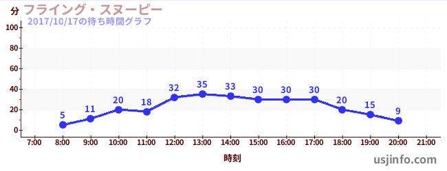 • フライング・スヌーピー$B$N(B2017年10月17日の待ち時間