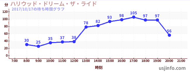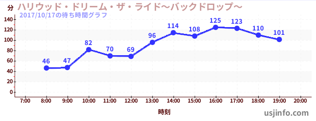 • ハリウッド・ドリーム・ザ・ライド〜バックドロップ〜$B$N(B2017年10月17日の待ち時間