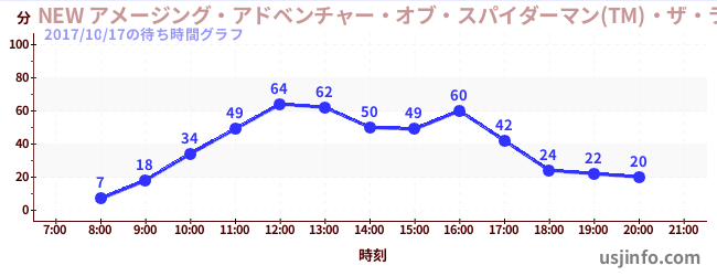 • NEW アメージング・アドベンチャー・オブ・スパイダーマン(TM)・ザ・ライド 4K3D$B$N(B2017年10月17日の待ち時間