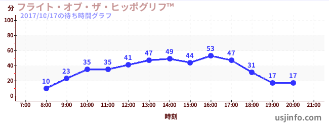 • フライト・オブ・ザ・ヒッポグリフ™$B$N(B2017年10月17日の待ち時間