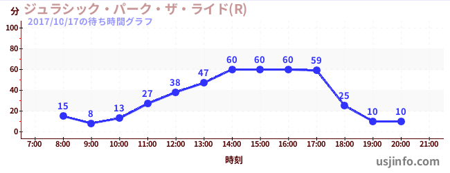 • ジュラシック・パーク・ザ・ライド(R)$B$N(B2017年10月17日の待ち時間