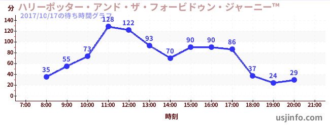 • ハリーポッター・アンド・ザ・フォービドゥン・ジャーニー™$B$N(B2017年10月17日の待ち時間