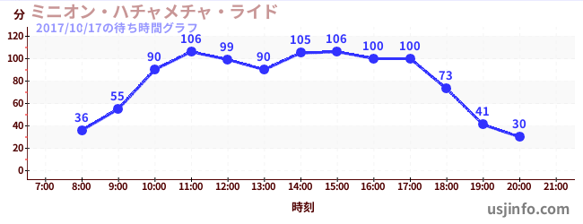 • ミニオン・ハチャメチャ・ライド$B$N(B2017年10月17日の待ち時間