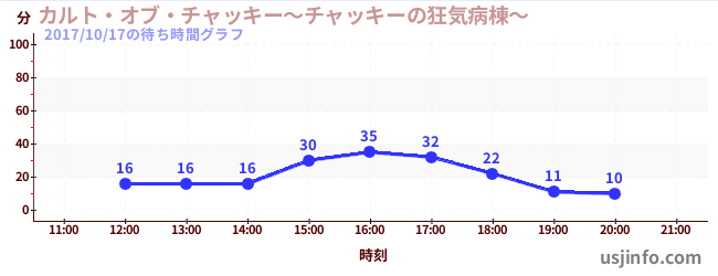 • カルト・オブ・チャッキー~チャッキーの狂気病棟~$B$N(B2017年10月17日の待ち時間