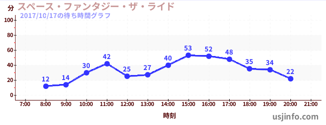 • スペース・ファンタジー・ザ・ライド$B$N(B2017年10月17日の待ち時間