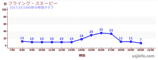 • フライング・スヌーピー$B$N(B2017年10月19日の待ち時間