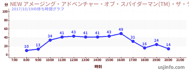 • NEW アメージング・アドベンチャー・オブ・スパイダーマン(TM)・ザ・ライド 4K3D$B$N(B2017年10月19日の待ち時間