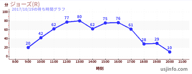 • ジョーズ(R)$B$N(B2017年10月19日の待ち時間