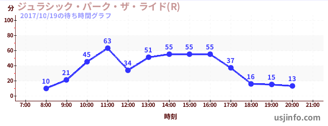 • ジュラシック・パーク・ザ・ライド(R)$B$N(B2017年10月19日の待ち時間