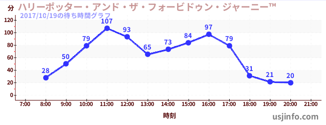 • ハリーポッター・アンド・ザ・フォービドゥン・ジャーニー™$B$N(B2017年10月19日の待ち時間