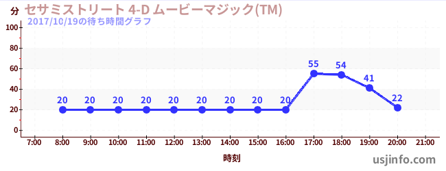 • セサミストリート 4-D ムービーマジック(TM)$B$N(B2017年10月19日の待ち時間