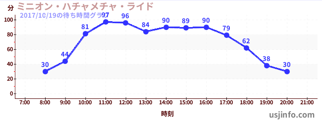 • ミニオン・ハチャメチャ・ライド$B$N(B2017年10月19日の待ち時間