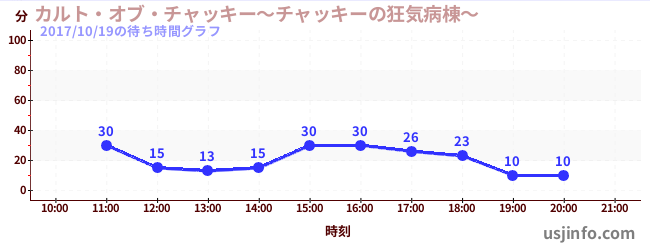 • カルト・オブ・チャッキー~チャッキーの狂気病棟~$B$N(B2017年10月19日の待ち時間