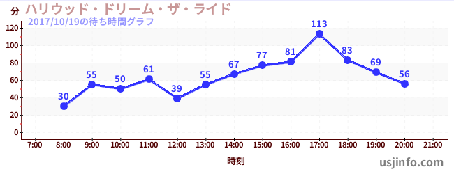 • ハリウッド・ドリーム・ザ・ライド$B$N(B2017年10月19日の待ち時間