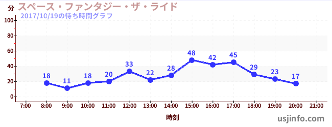• スペース・ファンタジー・ザ・ライド$B$N(B2017年10月19日の待ち時間