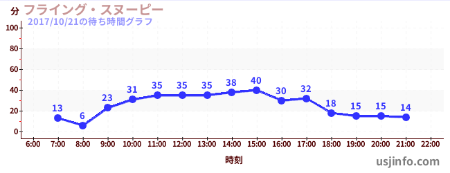 • フライング・スヌーピー$B$N(B2017年10月21日の待ち時間