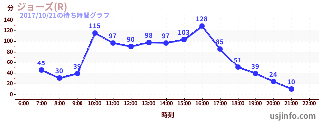 • ジョーズ(R)$B$N(B2017年10月21日の待ち時間