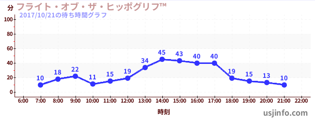 • フライト・オブ・ザ・ヒッポグリフ™$B$N(B2017年10月21日の待ち時間