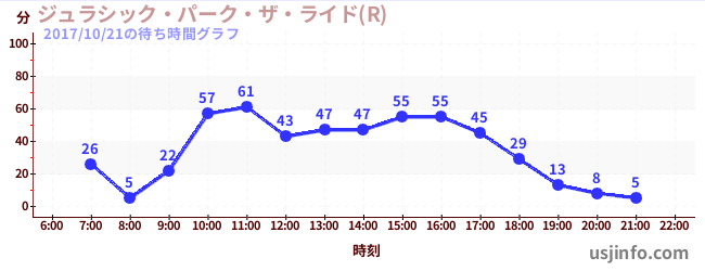• ジュラシック・パーク・ザ・ライド(R)$B$N(B2017年10月21日の待ち時間