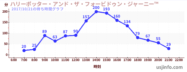 • ハリーポッター・アンド・ザ・フォービドゥン・ジャーニー™$B$N(B2017年10月21日の待ち時間