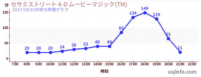 • セサミストリート 4-D ムービーマジック(TM)$B$N(B2017年10月21日の待ち時間