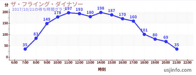 • ザ・フライング・ダイナソー$B$N(B2017年10月21日の待ち時間
