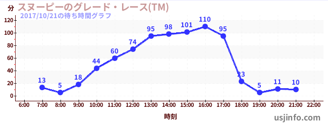 • スヌーピーのグレード・レース(TM)$B$N(B2017年10月21日の待ち時間