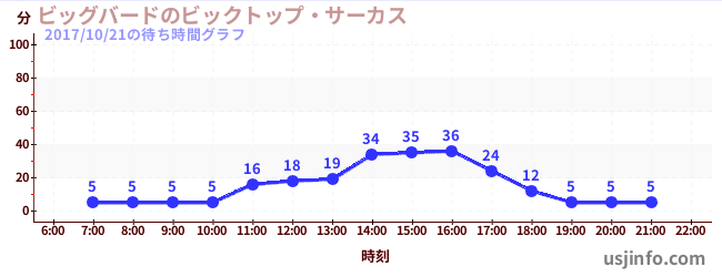 • ビッグバードのビックトップ・サーカス$B$N(B2017年10月21日の待ち時間