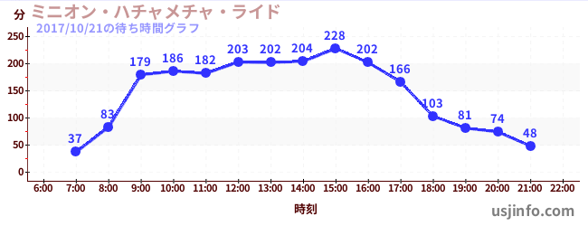 • ミニオン・ハチャメチャ・ライド$B$N(B2017年10月21日の待ち時間