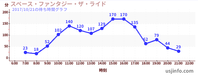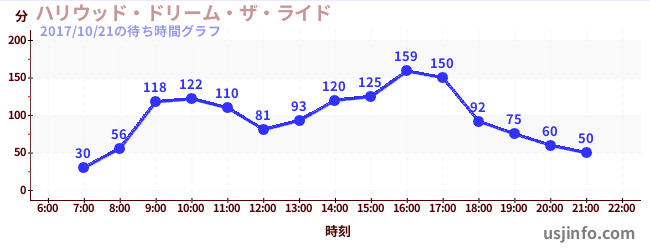 • ハリウッド・ドリーム・ザ・ライド$B$N(B2017年10月21日の待ち時間